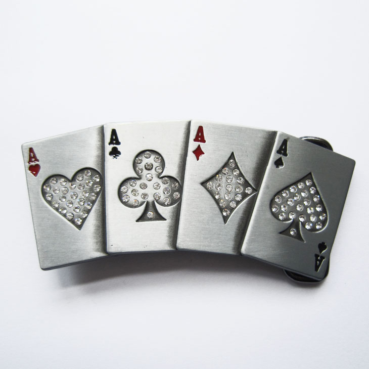 New Hip Hop Clear Rhinestones 4 Ace Poker Card Bling Belt Buckle