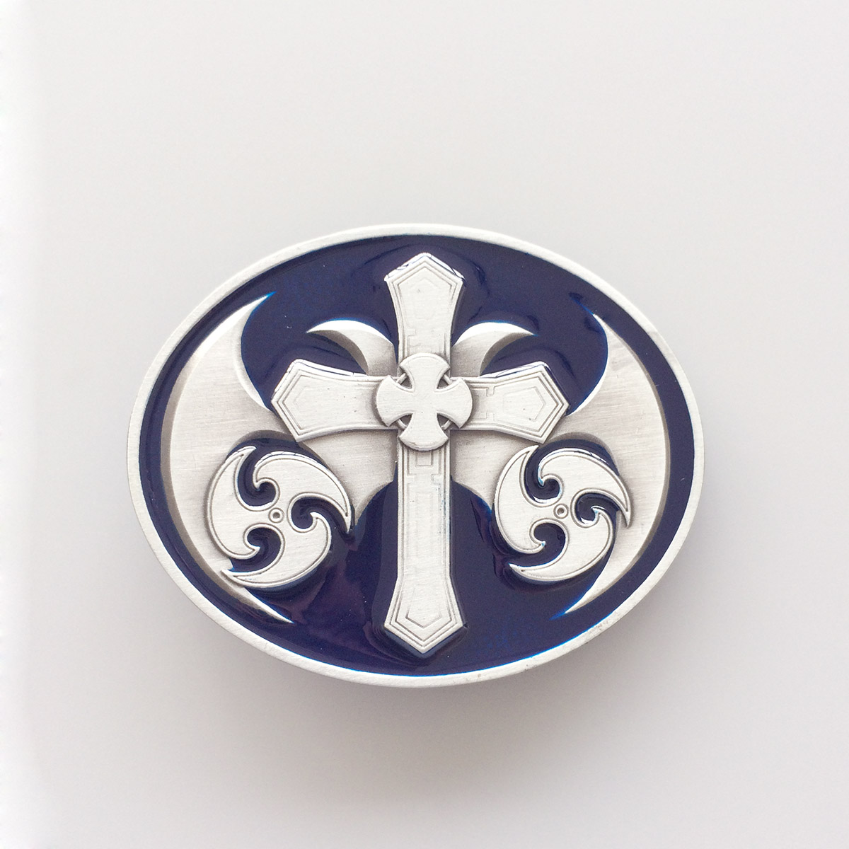 Blue Enamel Celtic Cross Knot Oval Belt Buckle OC051BL